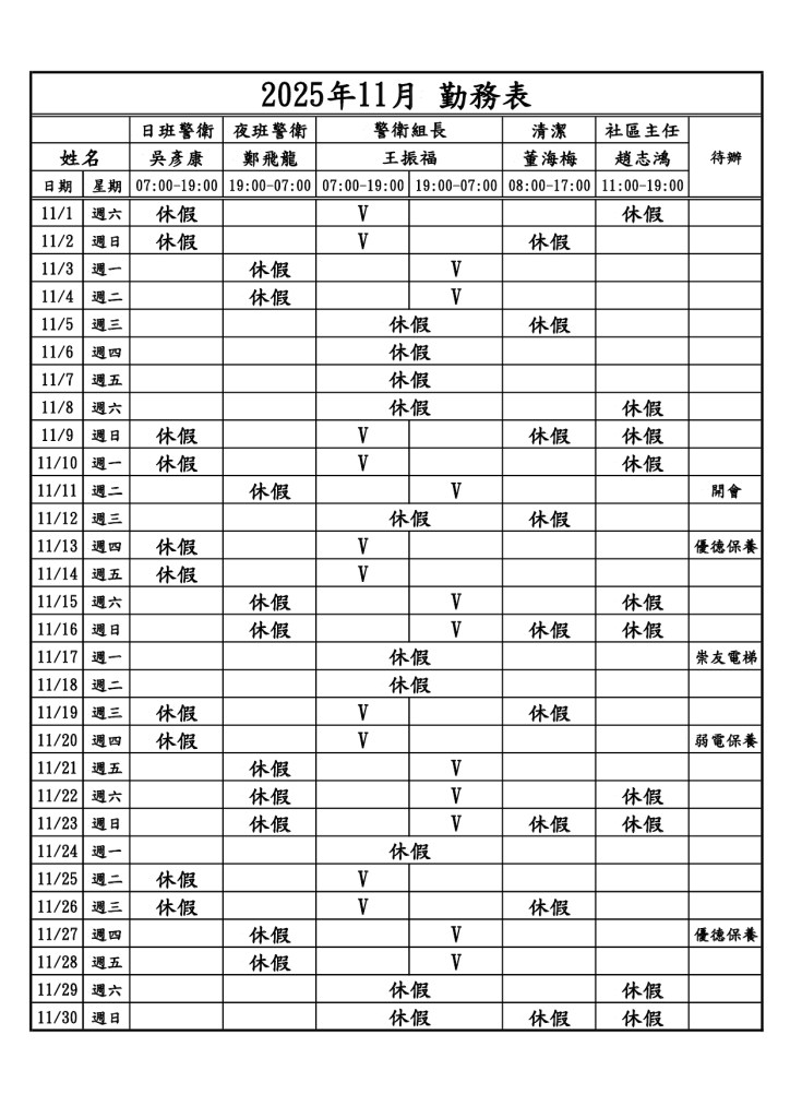 114年11月現場服務人員班表